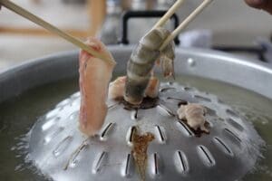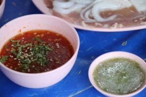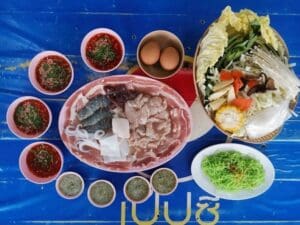 ด้วยคุณภาพของวัตถุดิบที่คัดสรรอย่างตั้งใจ พกพาความสด สะอาด อร่อย ที่เด็ดอยู่ที่ สูตรน้ำจิ้มที่ไม่เหมือนใคร คือน้ำจิ้มหมูกระทะ (สีแดง) และน้ำจิ้มซีฟู๊ดมะนาวสด (สีเขียว) จะจิ้มเดี่ยวๆ หรือผสมก็เข้าที สำหรับสายแซ่บซี๊ด (หากไม่สาแก่ใจ ทางร้านมีบริการ พริก กระเทียม)